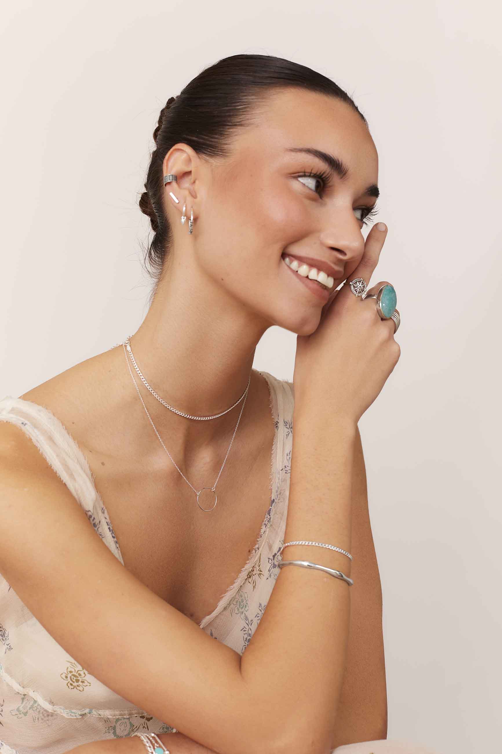 I nostri gioielli sono realizzati in argento sterling 925, un materiale prezioso che puoi utilizzare nella tua vita quotidiana senza che si danneggi. Sebbene possano scurirsi in determinate situazioni, possono essere facilmente puliti e mantengono le loro proprietà originali.