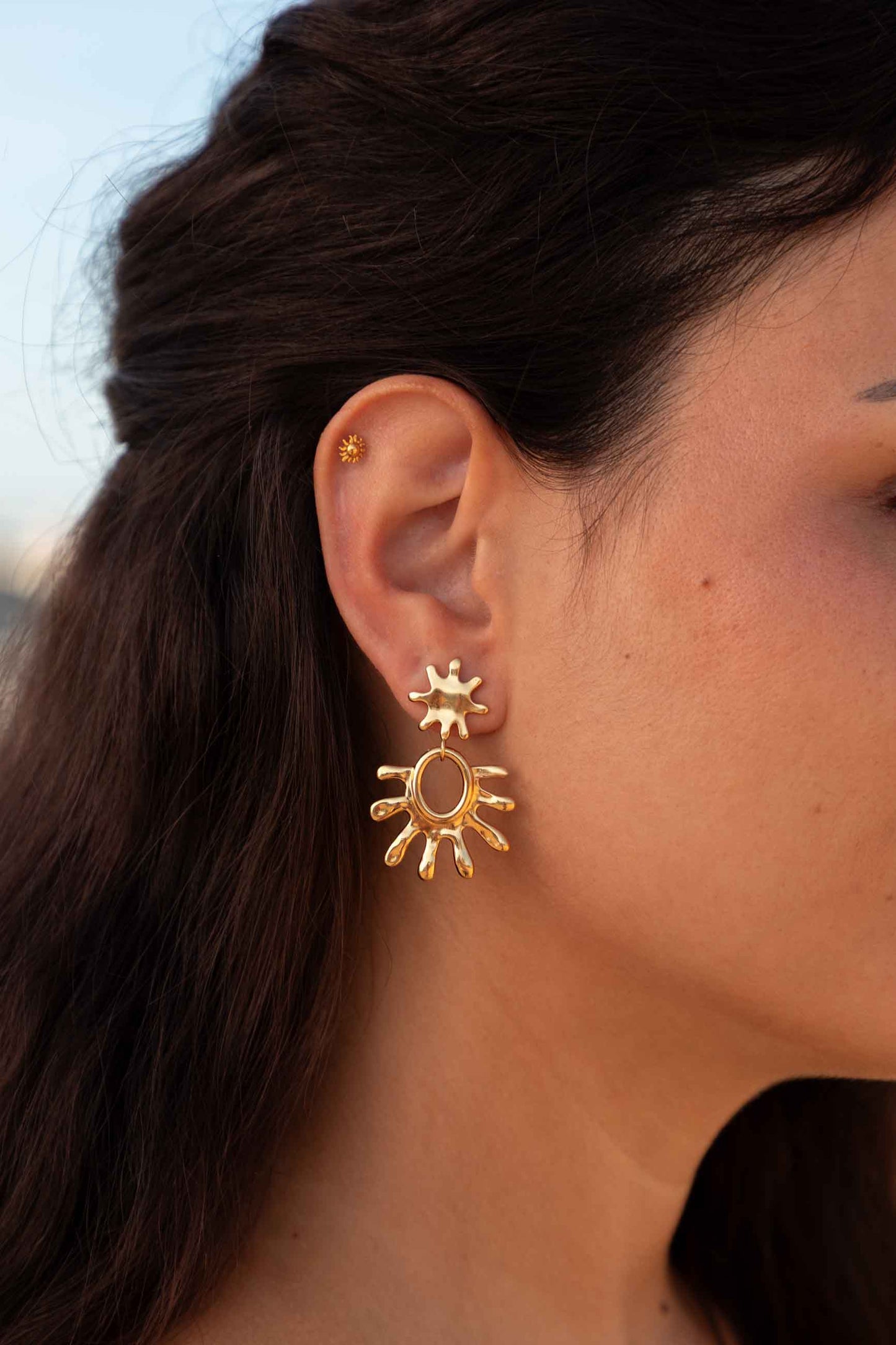 Gli orecchini PIGALANA dorati racchiudono tutta l’energia del sole in un gioiello unico. Sono placcati in oro su ottone e realizzati in Spagna, con un design maxi che dona luce e carattere a qualsiasi combinazione.