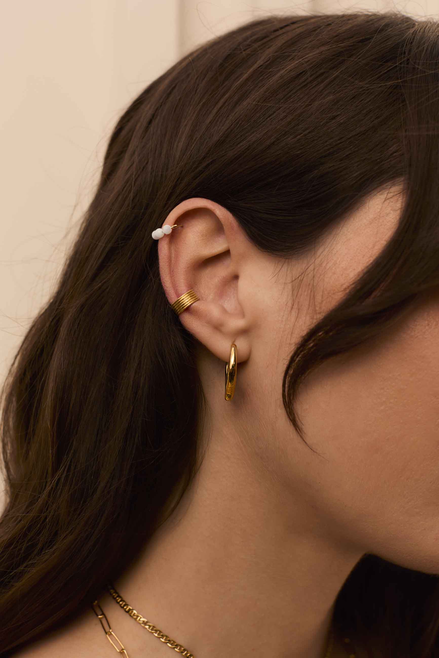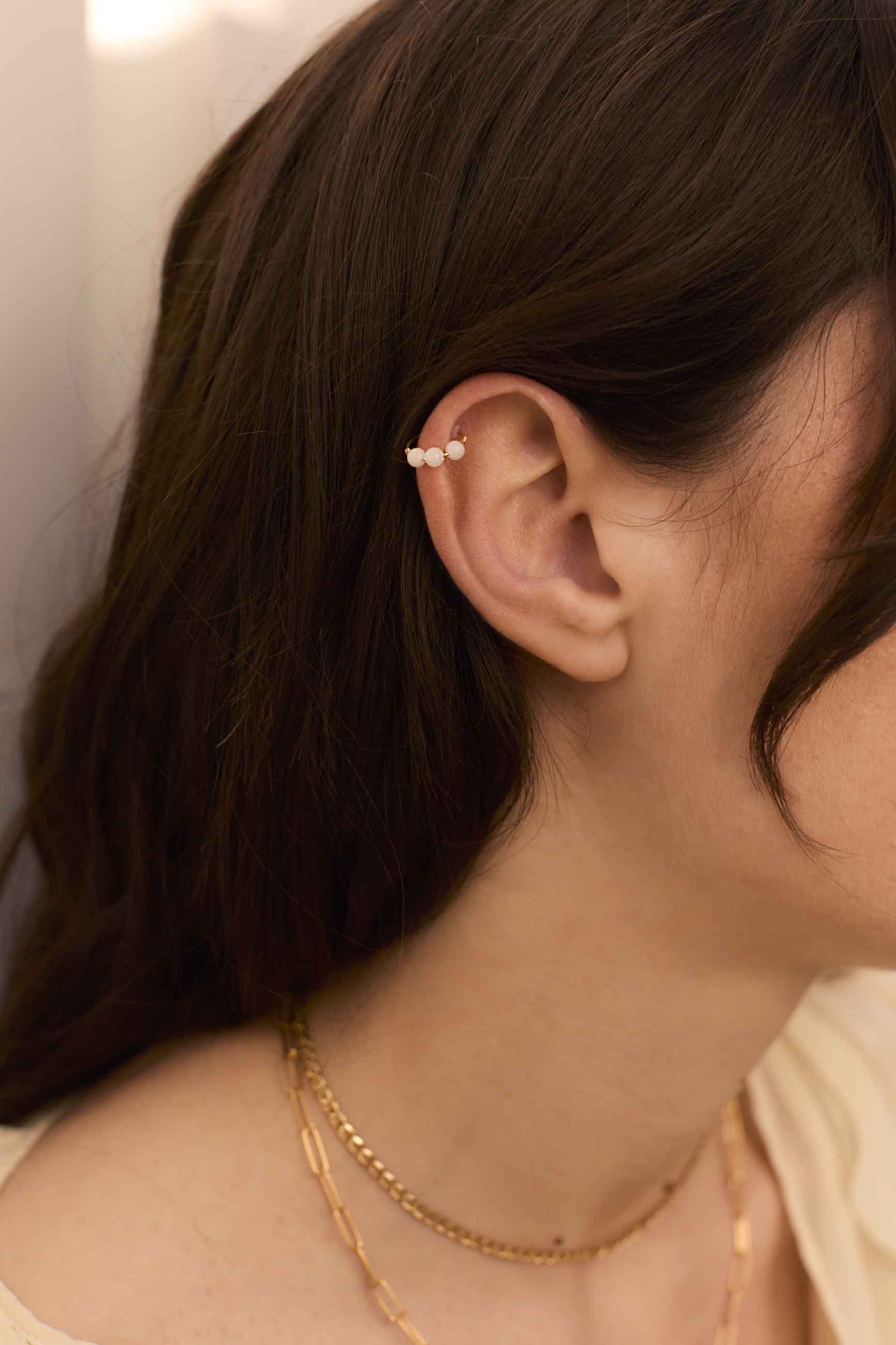 I piercing DAYARAM ORO sono dei cerchi lisci con tre palline di pietra di luna, una accanto all'altra. Bellissimi!