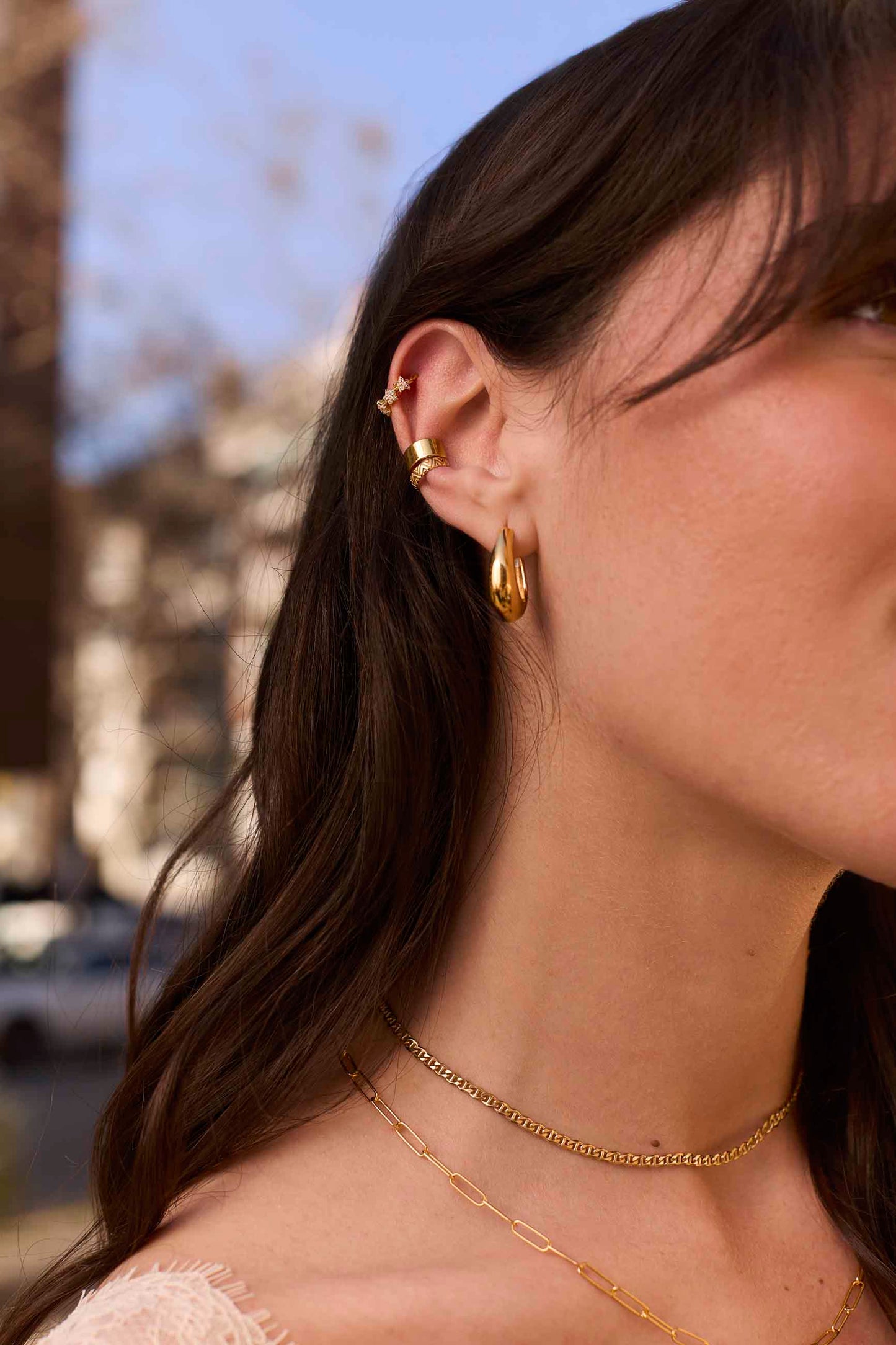 Combina il piercing SHANKARA ORO con altri orecchini di zirconi per creare accattivanti combi pieni di luce.