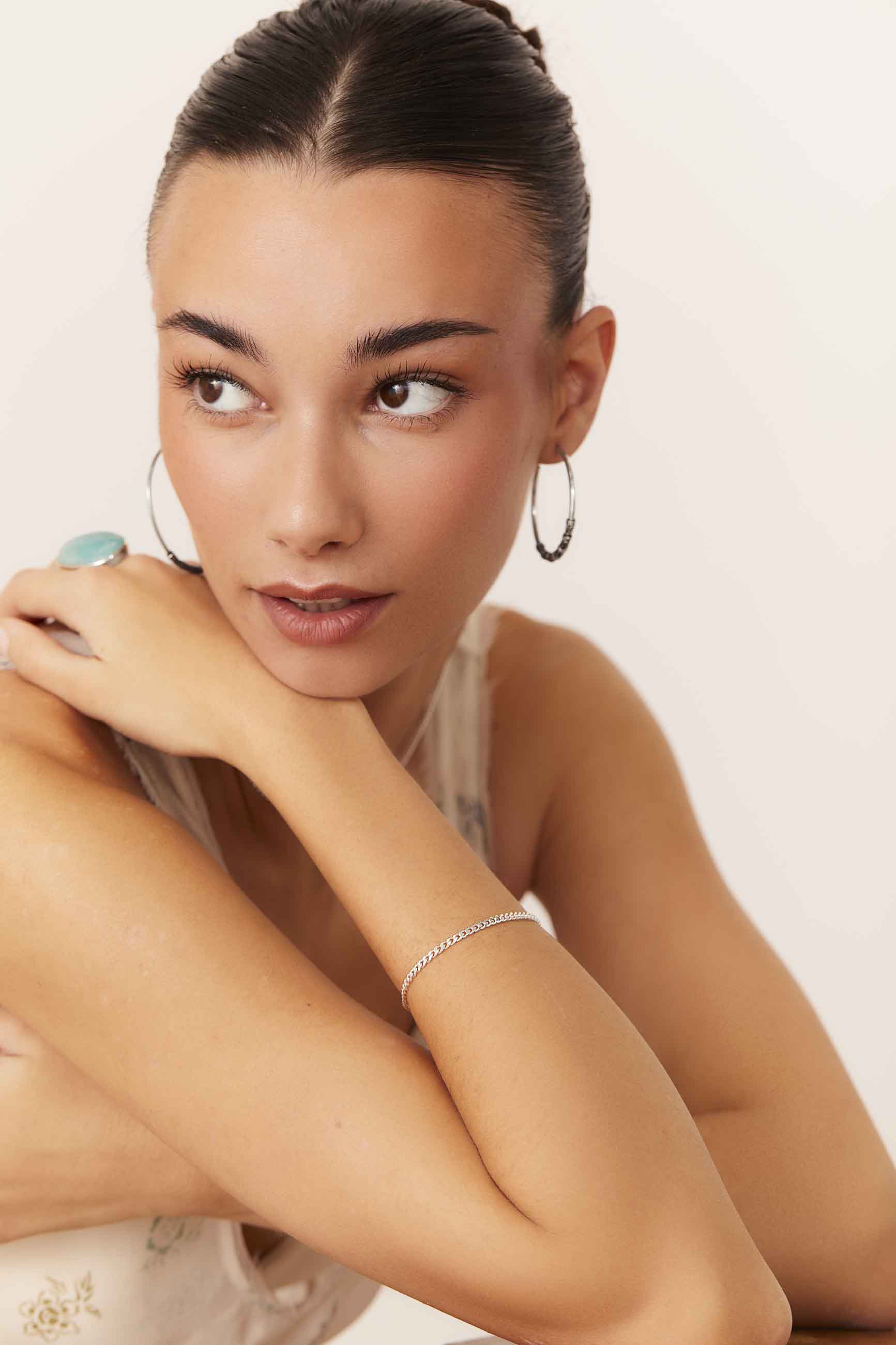 Il bracciale NAYA è un bracciale molto semplice in argento formato da una serie di piccole maglie.