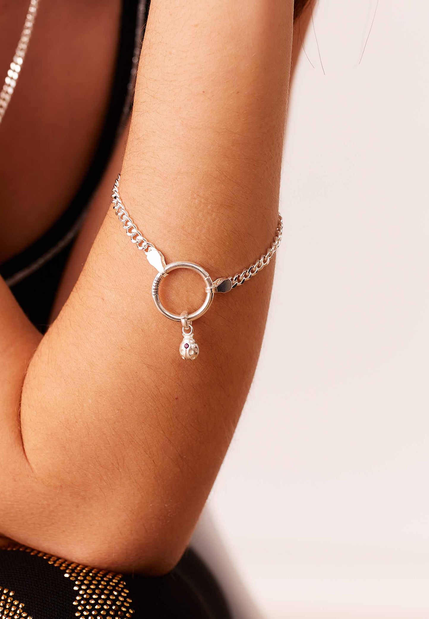 El charm en forma de mariquita es un símbolo de buena suerte, prosperidad y alegría. Fabricado en plata de ley 925, su diseño encantador se realza con una circonita rubí que añade un toque vibrante de color y energía positiva.