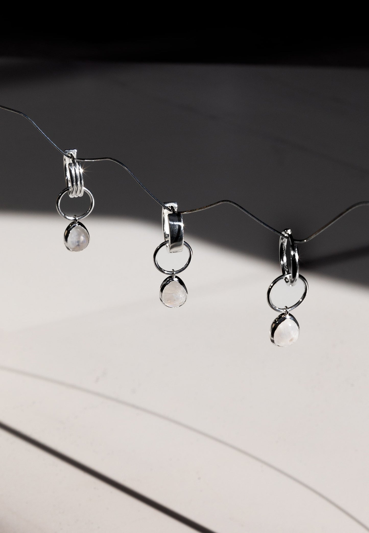 El charm Aniyamit, elaborado en latón bañado en plata, es el complemento ideal para transformar tus aros básicos en una joya sofisticada. Su diseño con piedra Luna Natural añade un toque de elegancia mística a cualquier look.
