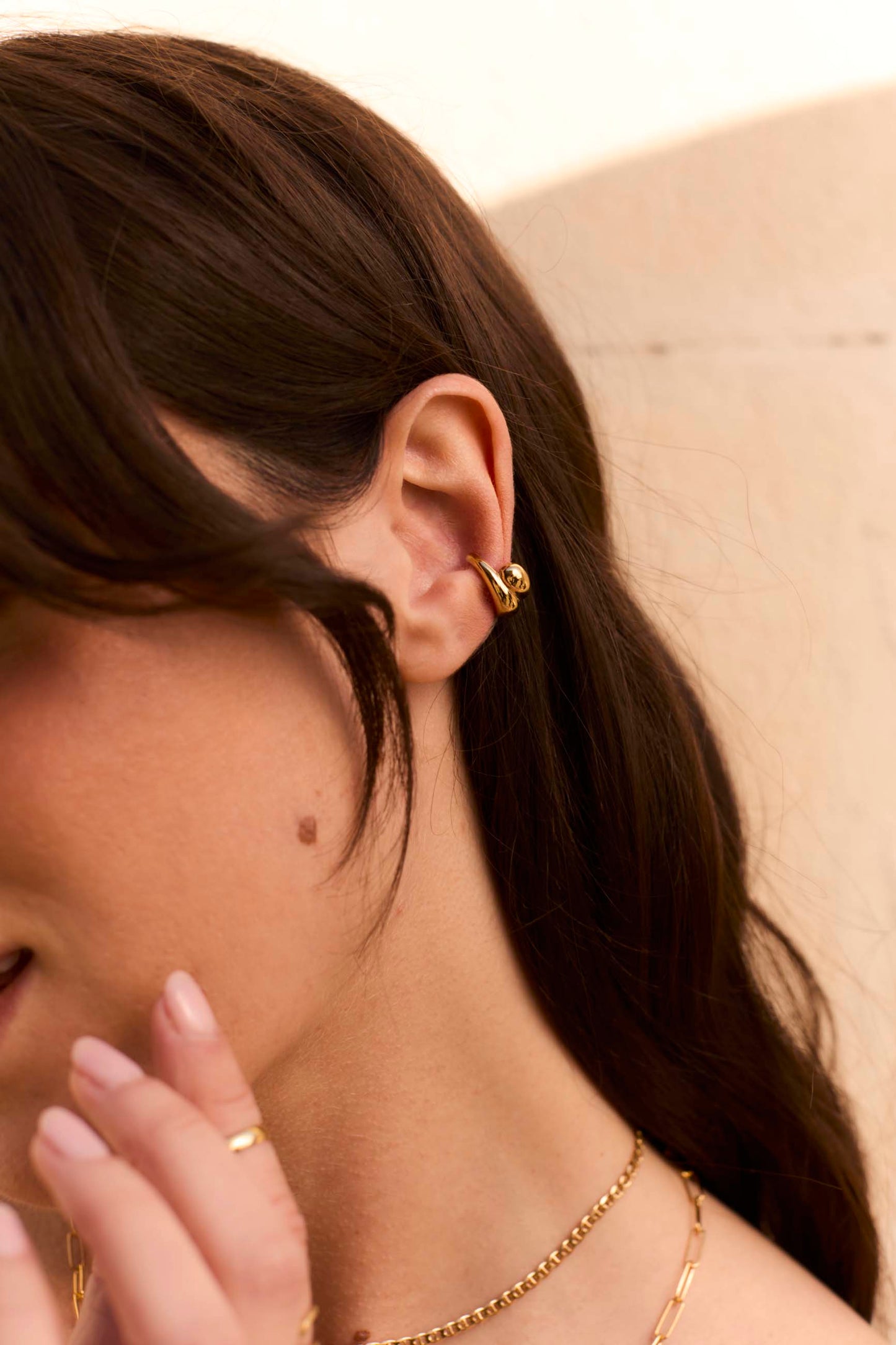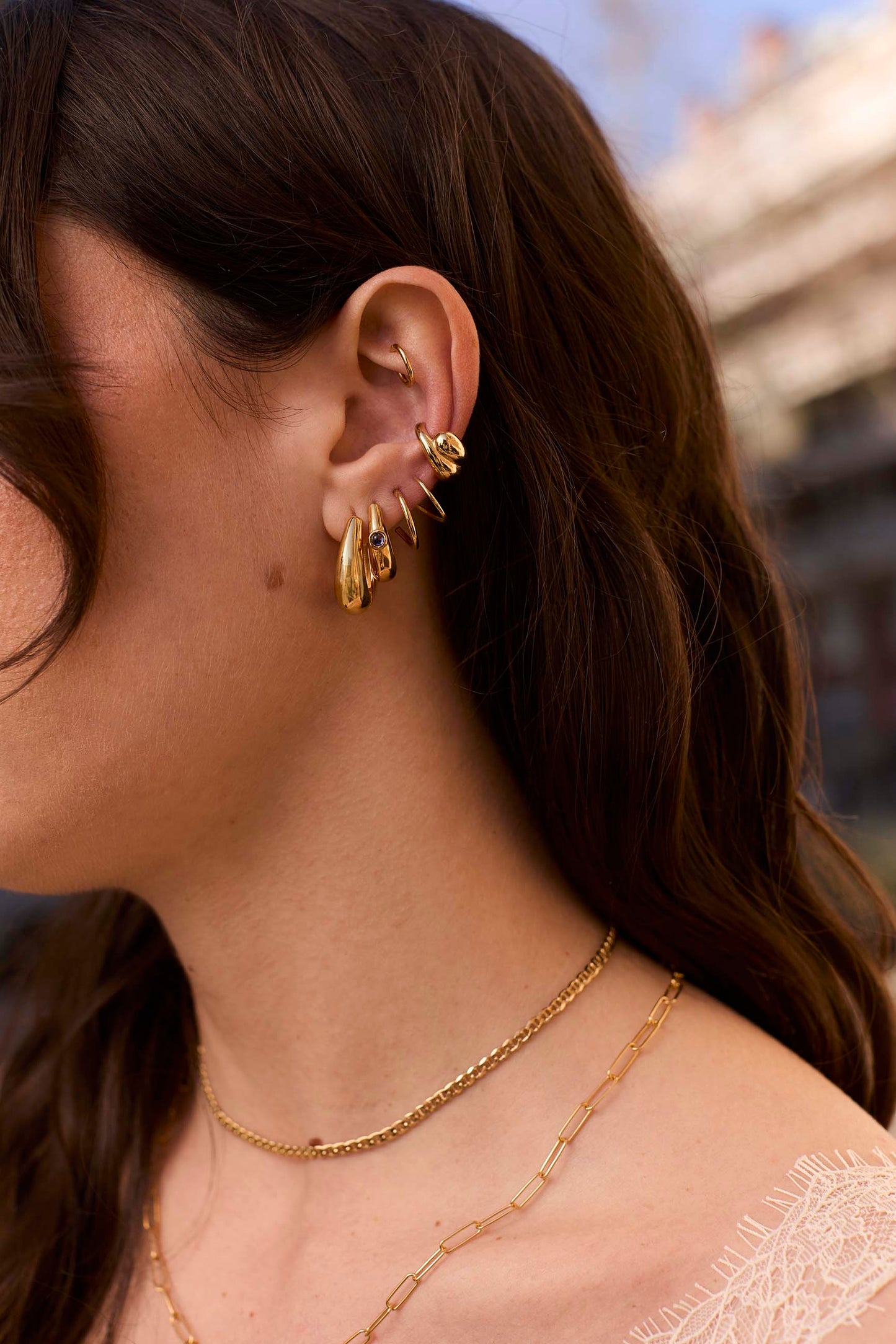 Fabricado en plata de ley 925 y disponible en baño de oro de 18K, este earcuff es perfecto para quienes buscan una pieza versátil y llamativa. No necesita perforación y se ajusta con comodidad, permitiéndote llevarlo solo para un look sutil o combinado con otros pendientes para un efecto más atrevido.