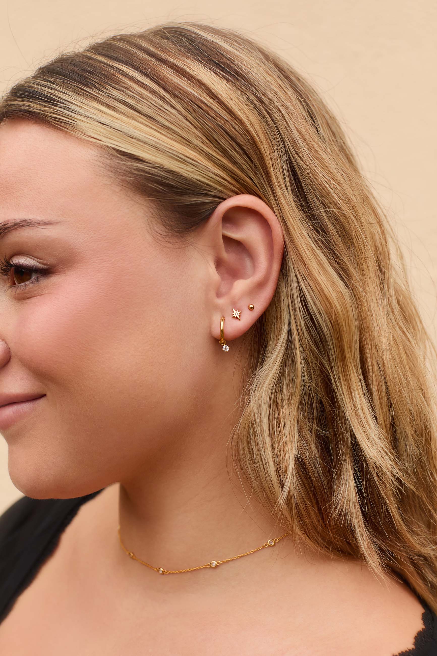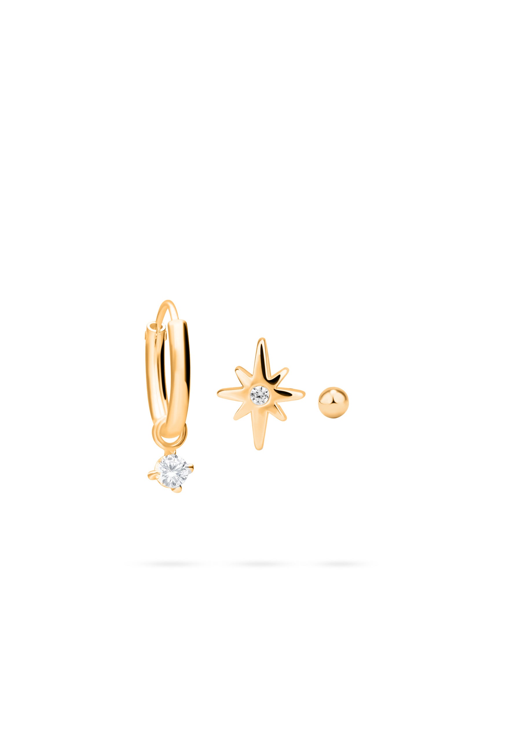 Pack de pendientes con aro, bolita y estrella en oro NAZUK