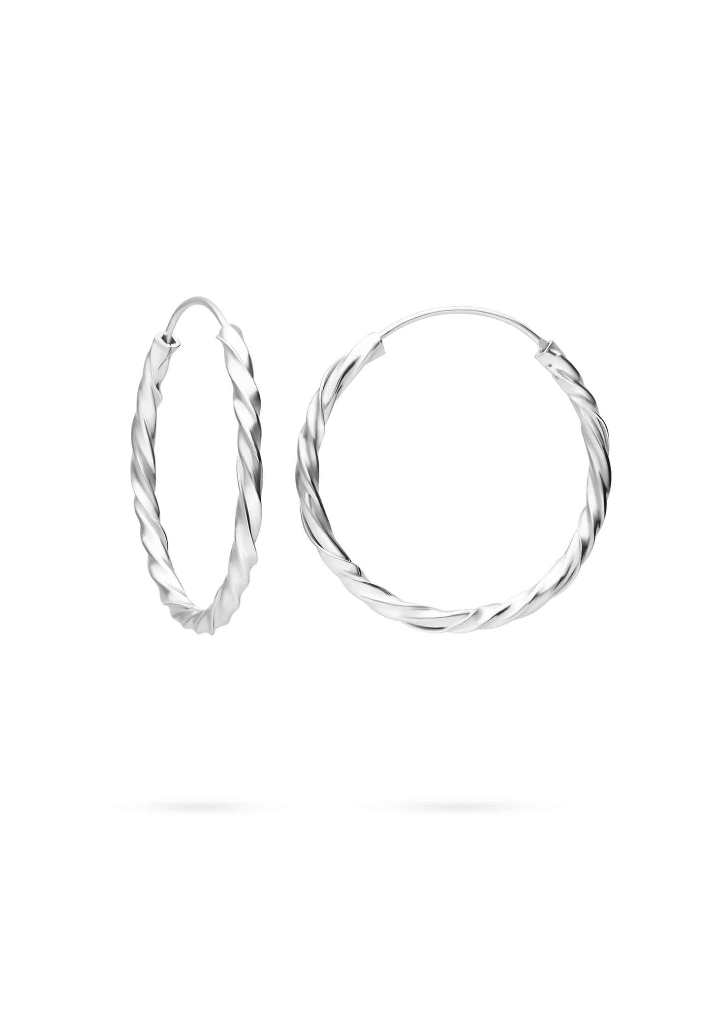Los pendientes ANOOP (30mm) son unos aros de Plata de Ley 925 con tamaño mediano-grande. Tienen un relieve muy sugerente alrededor de toda la superficie del arito.