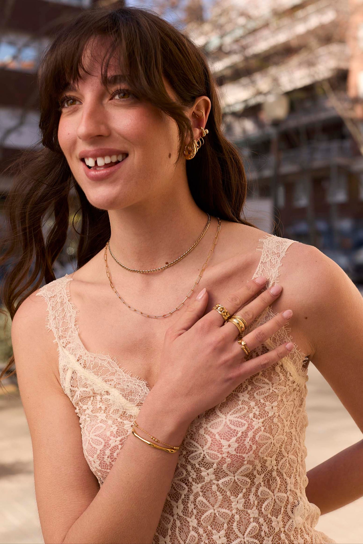 También tenemos anillos midi y para el pie. Sirven tanto para los dedos del pie como para ponerlos en medio dedo, ¡incluso depende qué talla tengas puede servirte de anillo normal! Estos anillos son de talla S que corresponde a una 4, y M que corresponde a una 6.