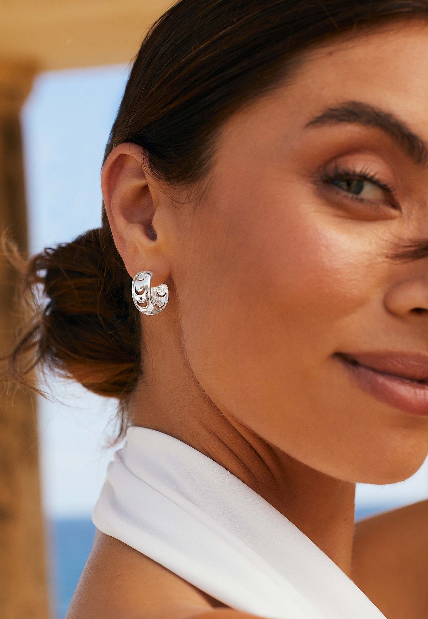 Te presentamos los pendientes Grahan, unos elegantes pendientes de aro con diseño de eclipse. Estos pendientes combinan la clásica forma de aro abombado con un toque innovador, transformando un básico en una joya original y sofisticada.