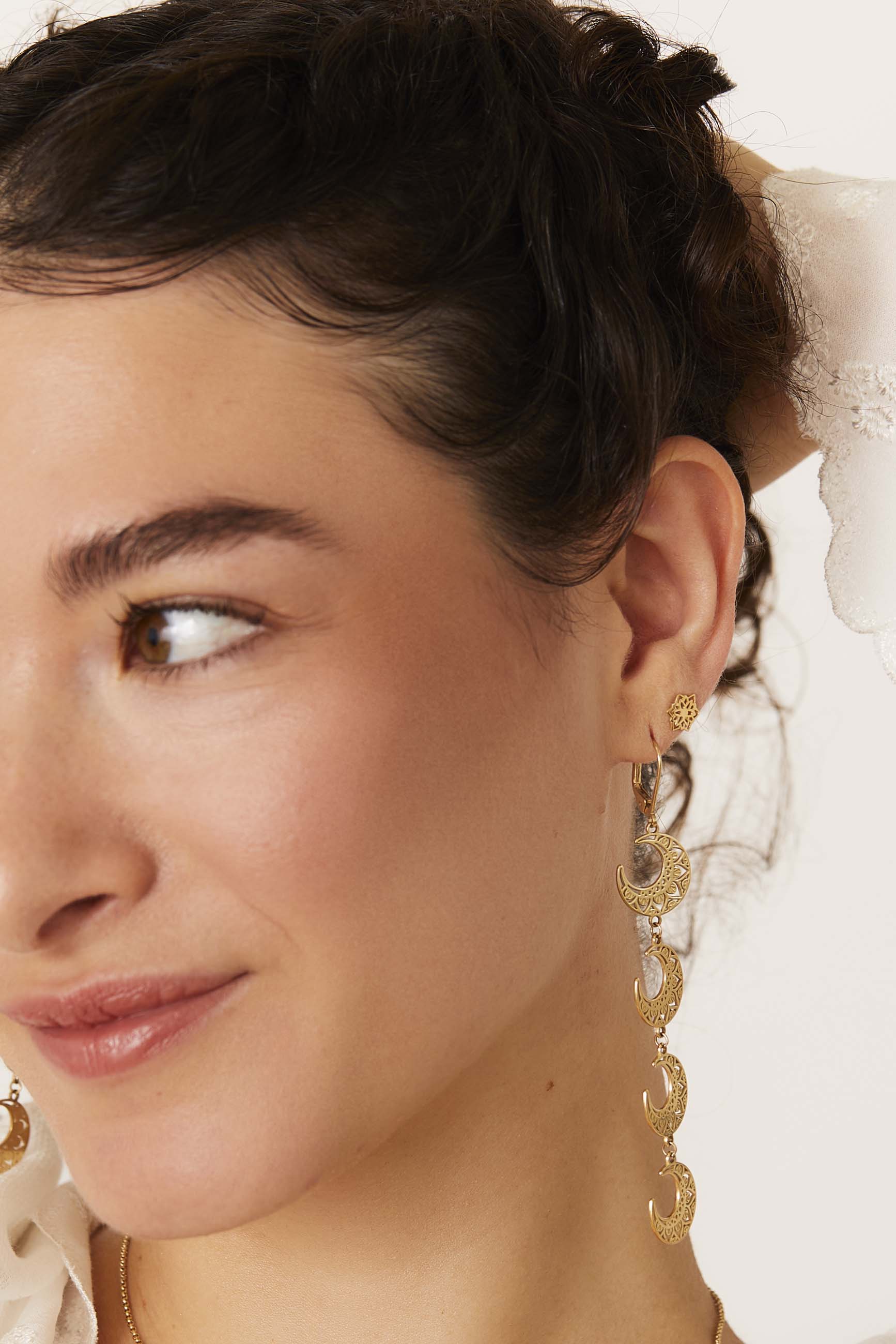 Los pendientes HEMAL BAÑADOS EN ORO son unos pendientes delicados y finitos. Tienen un tamaño mediano-grande. Están pensados para lucirlos en el primer agujerito.