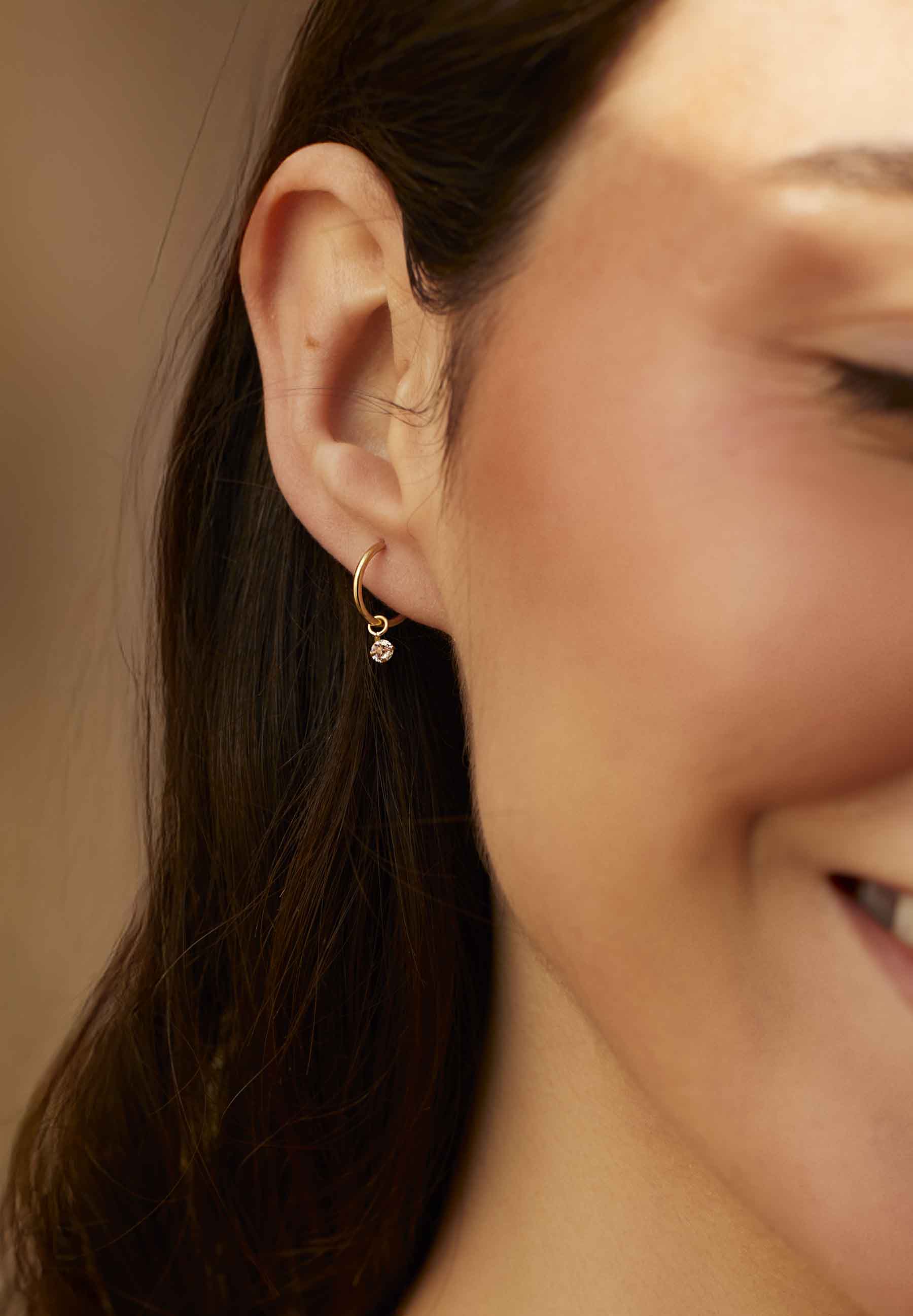 Los KASHVI BAÑADOS EN ORO están formados por un pequeño aro del que cuelga una preciosa circonita redonda. Son muy fáciles de combinar e ideales para darle un toque de luz a tus looks. Su tamaño es perfecto para llevarlo como primer pendiente o incluso para llevarlo como piercing en el segundo o tercer agujerito. ¡Te van a encantar!