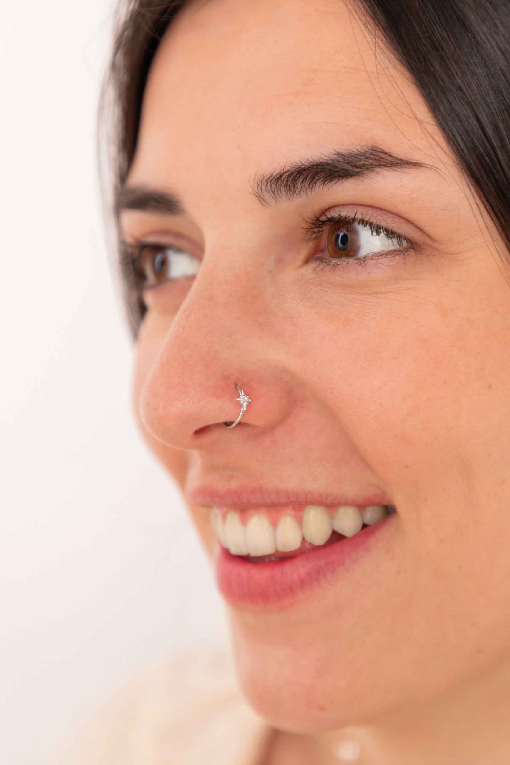 La versión en plata del KEMATE es ideal para quienes buscan un toque diferente dentro de los piercings nasales clásicos. Perfecto para combinar con otros elementos celestes o llevarlo como único protagonista.