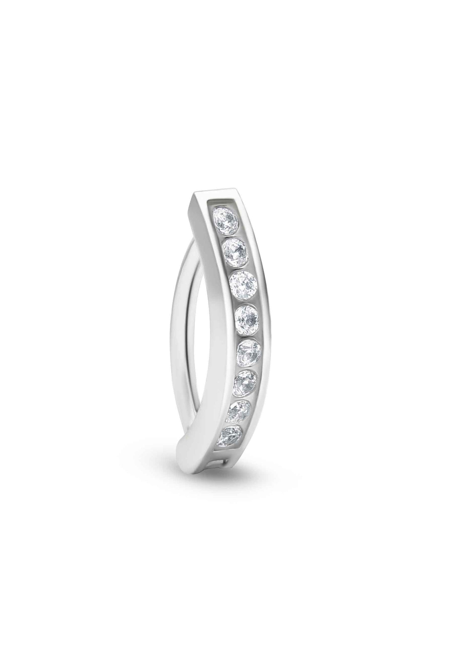El LEN es un piercing de tipo clicker diseñado para realzar el ombligo con un toque de luz y sofisticación. Fabricado en acero hipoalergénico, tiene 10 mm de alto y 1.2 mm de grosor, proporcionando un cierre frontal limpio y seguro gracias a su mecanismo de click.